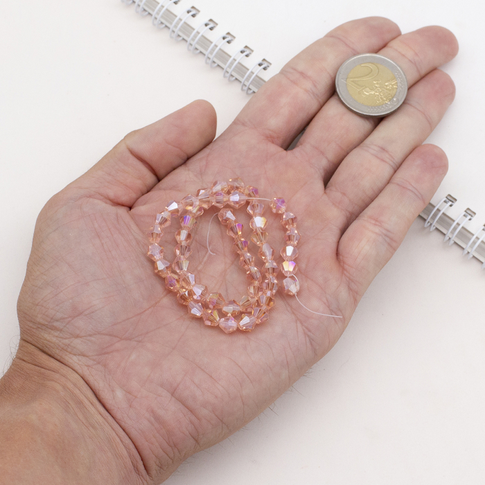 Намистини Гальваніка Скло АВ-Квітло, Грановані, Біконус, Колір: Рожевий, 6х5.5-6мм, Отвір 1мм, близько 45шт/26см/нитка, (13WB29688)