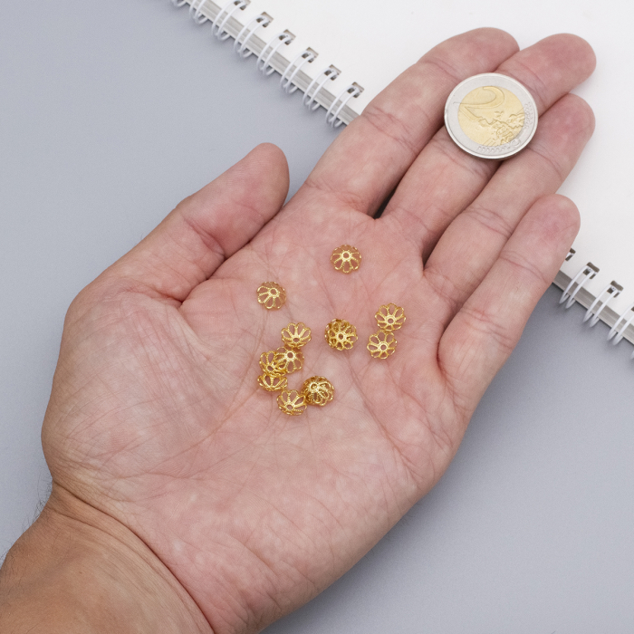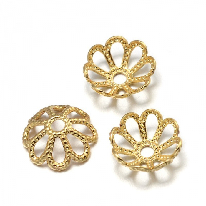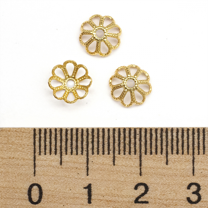 Шапочки для Намистин, Латунь, Квітка, Колір: Золото, Розмір: 8х3мм, Отвір 1.5мм, 20шт/упаковка, (13WB29159)