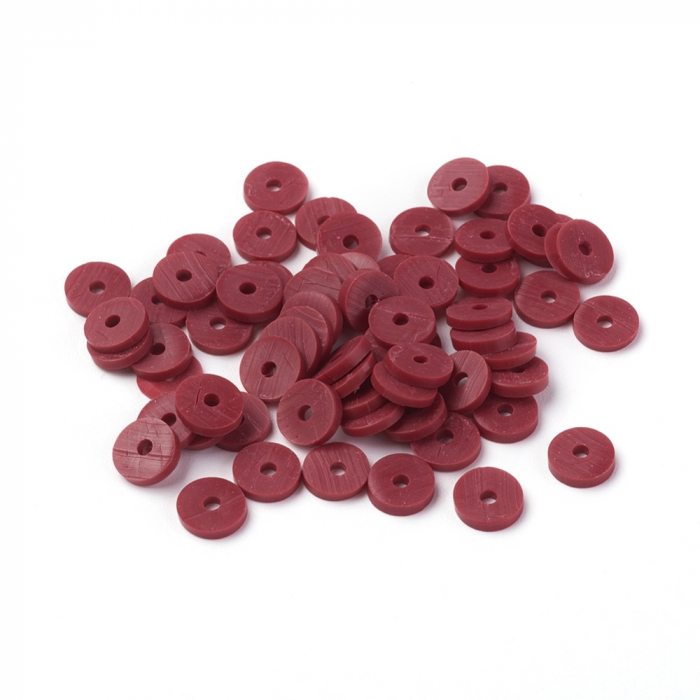 Намистини Екологічні з Полімерної Глини, Ручна Робота, Круглі Плоскі, Темно-червоний, 6х1мм, Отвір 2мм, Близько 345шт/40см/нитка (13WB29982)