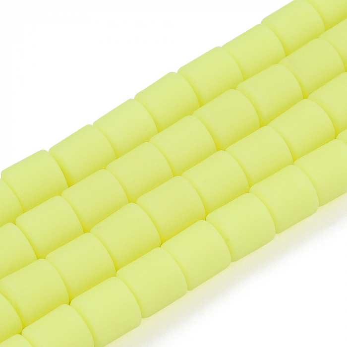Намистини з Полімерної Глини, Ручна Робота, Колонка, Колір: Жовтий, Розмір: 6.5х6мм, Отвір 1.2мм, Близько 58шт/38см/нитка, (13WB30019)