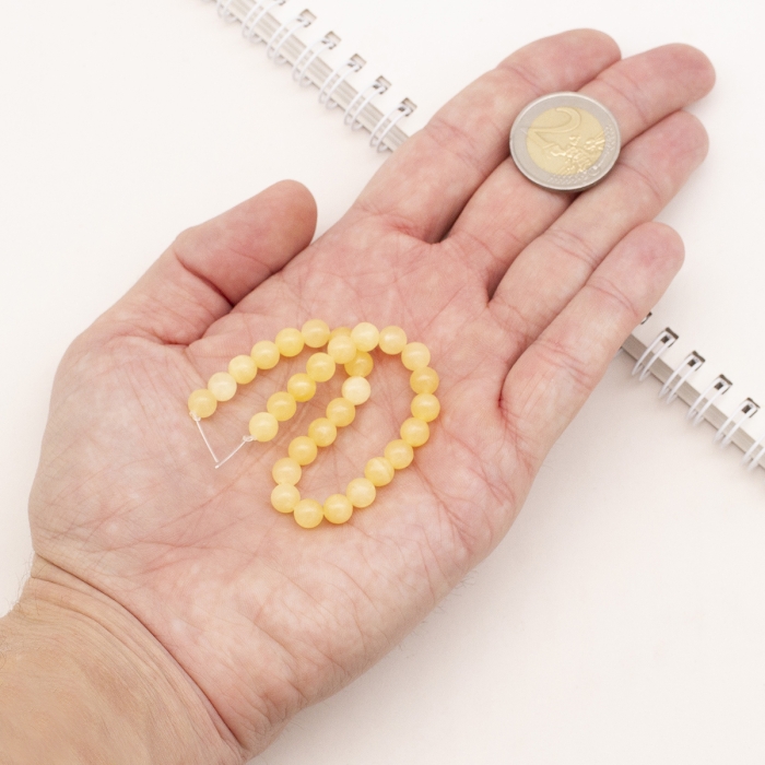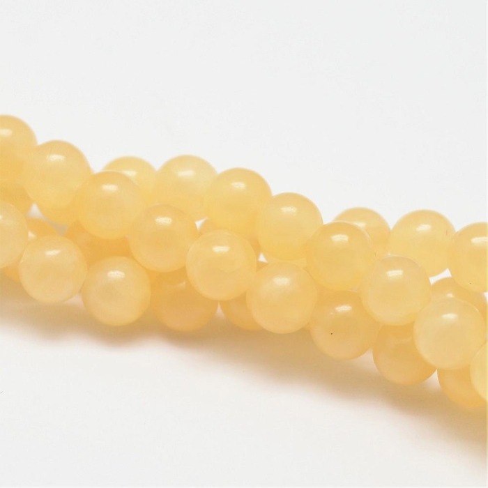 Намистини Натуральний Жовтий Нефрит, на нитках, Круглі, 6мм, Отвір 1мм, близько 30шт/19см/нитка, (13WB30096)колір: