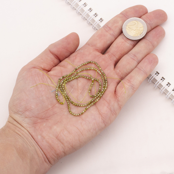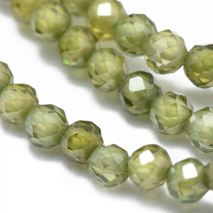 Намистини Фіаніти / Кубічний Цирконій, Круглі, Грановані, на Нитках, Колір: Оливковий, 2мм, Отвір 0.5мм, близько 160шт/36см, (13WB30832)