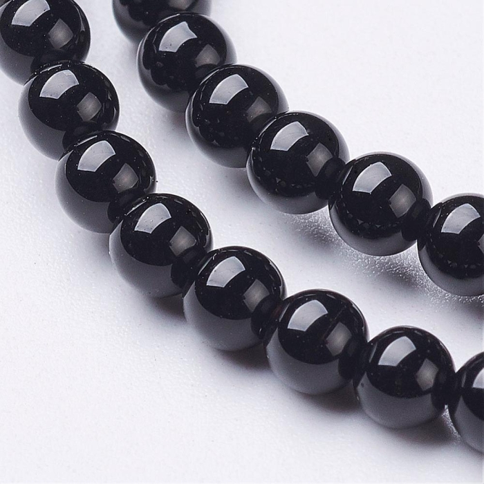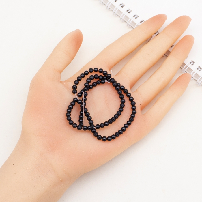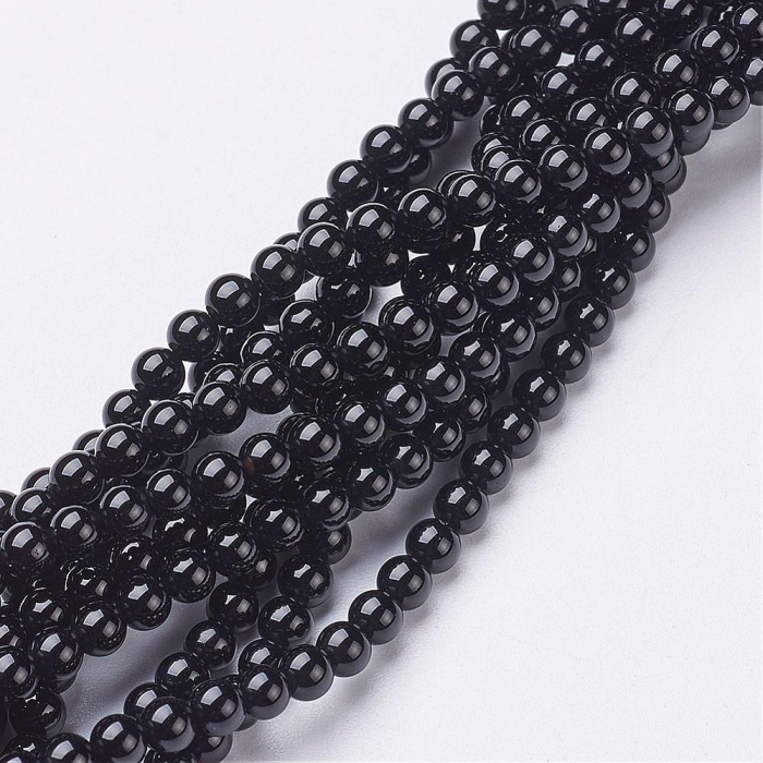 Намистини Натуральний Чорний Онікс, Клас А, на нитках, Круглі, 4мм, Отвір 0.8мм, близько 87шт/36см/нитка, (13WB30872)