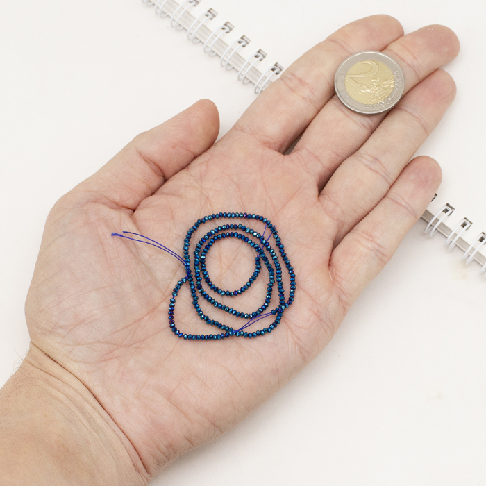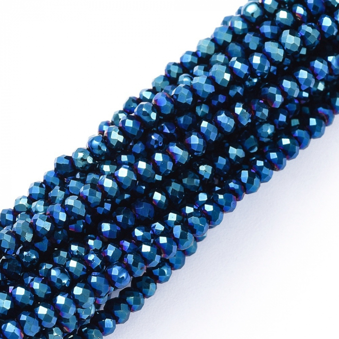 Намистини Гальваніка Скло, Грановані, Рондель, Покриття, Колір: Синій, 2х1.5мм, Отвір 0.6мм, близько 210-218шт/33-34см/нитка, (13WB31223)