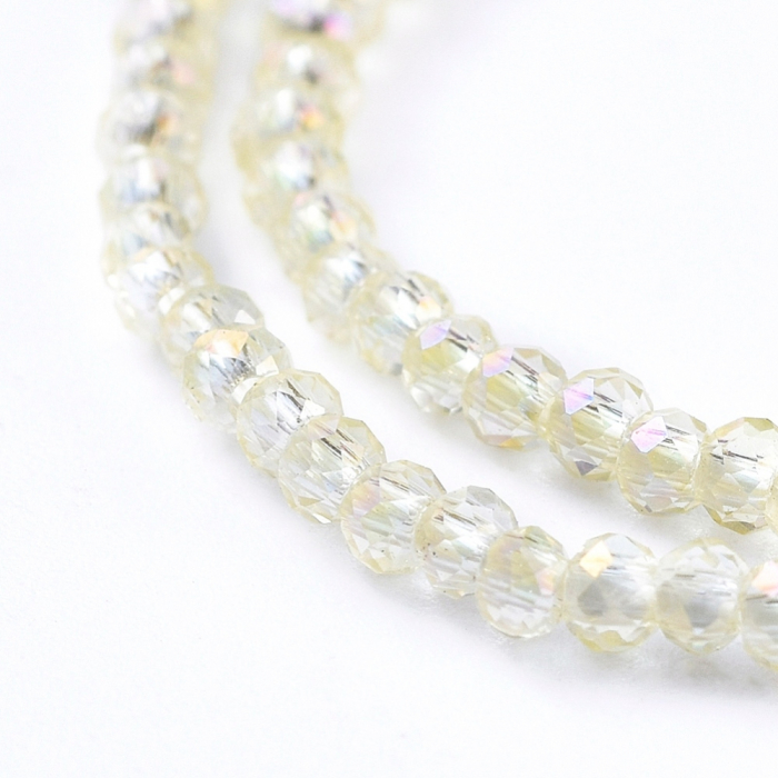 Намистини Гальваніка Скло, Грановані, Рондель, Веселкове Покриття, Колір: Шампанського, 2х1.5мм, Отвір 0.6мм, близько 223-234шт/35-35.5см/нитка, (13WB31281)