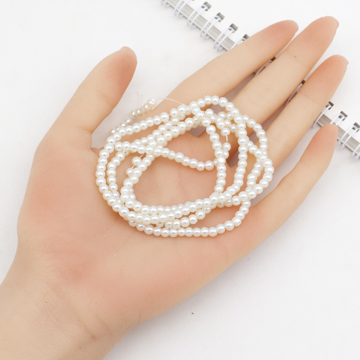 Скляні перлинні намистини широко використовуються у створенні прикрас. Їх вишуканий вигляд ідеально підходить для намист, браслетів, сережок та інших аксесуарів, надаючи виробам витонченості та елегантності. Крім того, такі намистини знаходять застосування в декоруванні одягу та аксесуарів, включаючи сукні, сумки та капелюхи, додаючи елемент розкоші та індивідуальності.