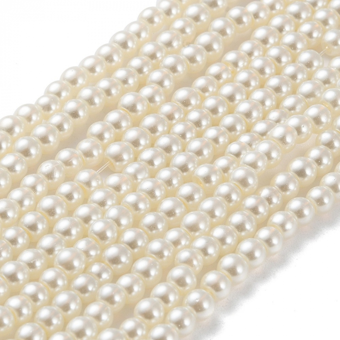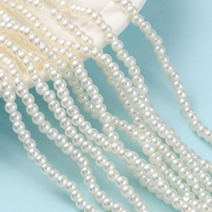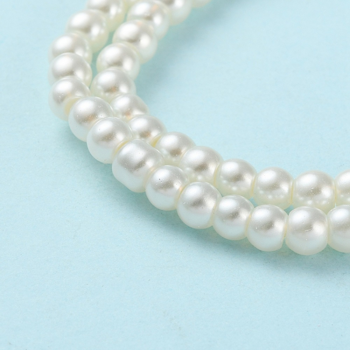 Намистини зі скляних перлів виготовлені з використанням техніки "Baking Painted", при якій фарба наноситься на поверхню та закріплюється запіканням. Це забезпечує міцне та довговічне покриття, що зберігає свої властивості з часом. Намистини мають яскравий перламутровий блиск, який робить їх зовні схожими з натуральними перлами. Завдяки високоякісному склу та стійкому покриттю вони не тільки виглядають елегантно, але й стійкі до пошкоджень, що робить їх практичним вибором для різних цілей.