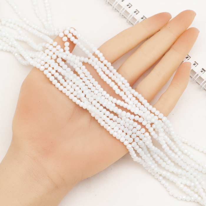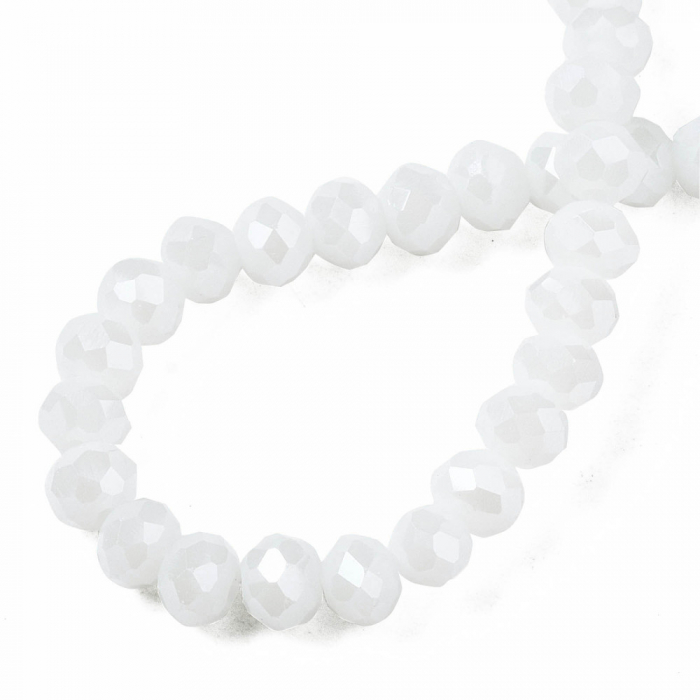 Намистини Скляні Гальваніка Гранені, Рондель, Перламутрове Покриття Колір: Білий
