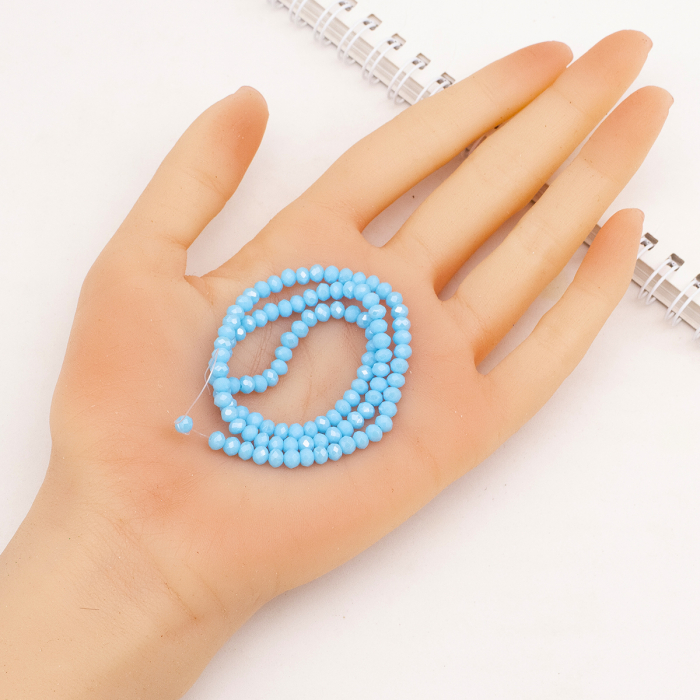 Намистини Скляні Гальваніка Рондель Гранені, Перламутрове Покриття, Темно-Блакитний, 4х3мм, Отвір 0.4мм, близько 110шт/40см/нитка, (13WB31575)