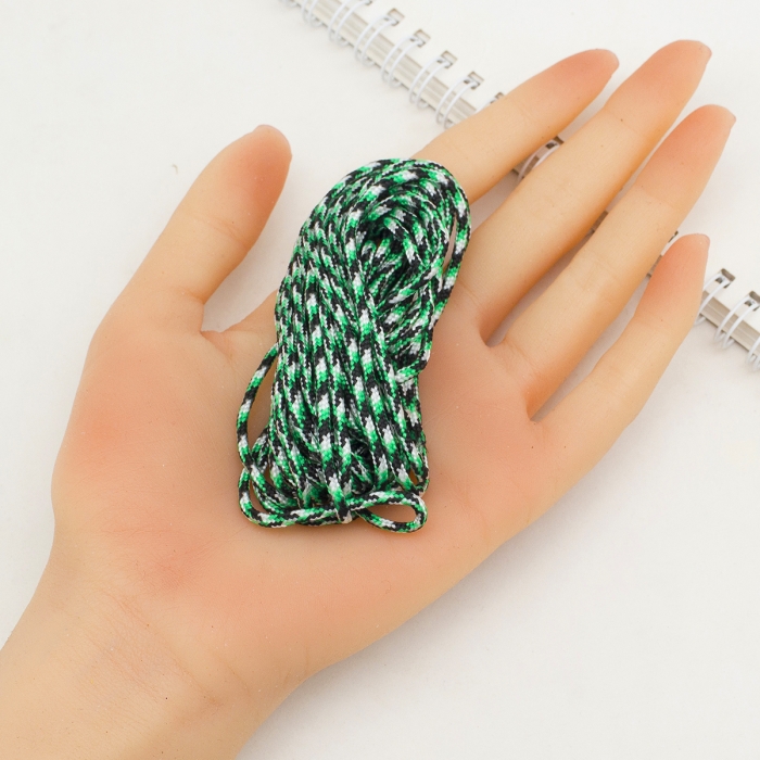 Шнур Паракорд Поліестер та Спандекс Смугастий Розмір: 2мм Колір: Зелений весняний Шнур Паракорд - це неймовірно міцний, гнучкий і універсальний матеріал, який ідеально підходить для створення стильної та неповторної біжутерії. Популярність паракорду зумовлена не лише зносостійкістю та міцністю, а й розмаїттям кольорів, які відкривають безмежні можливості для творчості. Приклади використання шнура паракорд: ● Браслети: класичні плетені браслети (можна створювати браслети різних стилів, таких як «Кобра», «Рибий хвіст», «Ланцюжок» та багато інших), браслети з намистинами, багатошарові браслети. ● Намиста та кольє: прості намиста, намиста з підвісками, макраме-кольє. ● Сережки: плетені сережки, пензлики з паракорду, сережки з підвісками. ● Ремінці для годинника: плетені ремінці, комбіновані ремінці. ● Пов'язки на голову та обідки: плетені пов'язки, прикрашені обідки. ● Брелоки та підвіски: міні-браслети, фігурні підвіски ● Інші ідеї для прикрас: пояси та ремені, чохли та футляри, пов'язки на зап'ястя або кісточку. Переваги паракорду у виготовленні прикрас: ● Міцність та кріплення: Паракорд дуже міцний, тому прикраси з нього стійкі до зношування. ● Гнучкість та легкість у роботі: легко піддається плетінню та зав'язуванню вузлів, що дозволяє створювати складні конструкції. ● Різноманітність кольорів та текстур: широкий вибір кольорів дозволяє створювати унікальні та яскраві вироби. ● Легкість у догляді: Паракорд легко миється і не поступається своїми властивостями при тривалому використанні. Прикраси з паракорду – це поєднання стилю, міцності та індивідуальності. Завдяки своїм чудовим властивостям паракорд дозволяє створювати найрізноманітніші вироби, від браслетів і намист до ремінців для годинників і брелоків. З нашим високоякісним паракордом ваші творчі проекти втілюватимуться в життя легко та із задоволенням. Створіть оригінальні прикраси своїми руками сьогодні!