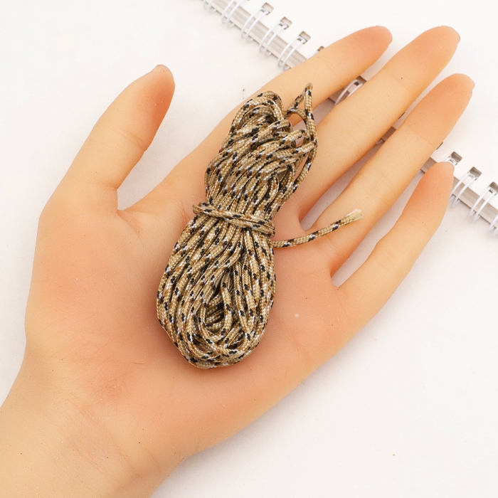Шнур Паракорд Поліестер та Спандекс Смугастий Розмір: 2мм Колір: Бежевий Шнур Паракорд - це неймовірно міцний, гнучкий і універсальний матеріал, який ідеально підходить для створення стильної та неповторної біжутерії. Популярність паракорду зумовлена не лише зносостійкістю та міцністю, а й розмаїттям кольорів, які відкривають безмежні можливості для творчості. Приклади використання шнура паракорд: ● Браслети: класичні плетені браслети (можна створювати браслети різних стилів, таких як «Кобра», «Рибий хвіст», «Ланцюжок» та багато інших), браслети з намистинами, багатошарові браслети. ● Намиста та кольє: прості намиста, намиста з підвісками, макраме-кольє. ● Сережки: плетені сережки, пензлики з паракорду, сережки з підвісками. ● Ремінці для годинника: плетені ремінці, комбіновані ремінці. ● Пов'язки на голову та обідки: плетені пов'язки, прикрашені обідки. ● Брелоки та підвіски: міні-браслети, фігурні підвіски ● Інші ідеї для прикрас: пояси та ремені, чохли та футляри, пов'язки на зап'ястя або кісточку. Переваги паракорду у виготовленні прикрас: ● Міцність та кріплення: Паракорд дуже міцний, тому прикраси з нього стійкі до зношування. ● Гнучкість та легкість у роботі: легко піддається плетінню та зав'язуванню вузлів, що дозволяє створювати складні конструкції. ● Різноманітність кольорів та текстур: широкий вибір кольорів дозволяє створювати унікальні та яскраві вироби. ● Легкість у догляді: Паракорд легко миється і не поступається своїми властивостями при тривалому використанні. Прикраси з паракорду – це поєднання стилю, міцності та індивідуальності. Завдяки своїм чудовим властивостям паракорд дозволяє створювати найрізноманітніші вироби, від браслетів і намист до ремінців для годинників і брелоків. З нашим високоякісним паракордом ваші творчі проекти втілюватимуться в життя легко та із задоволенням. Створіть оригінальні прикраси своїми руками сьогодні!
