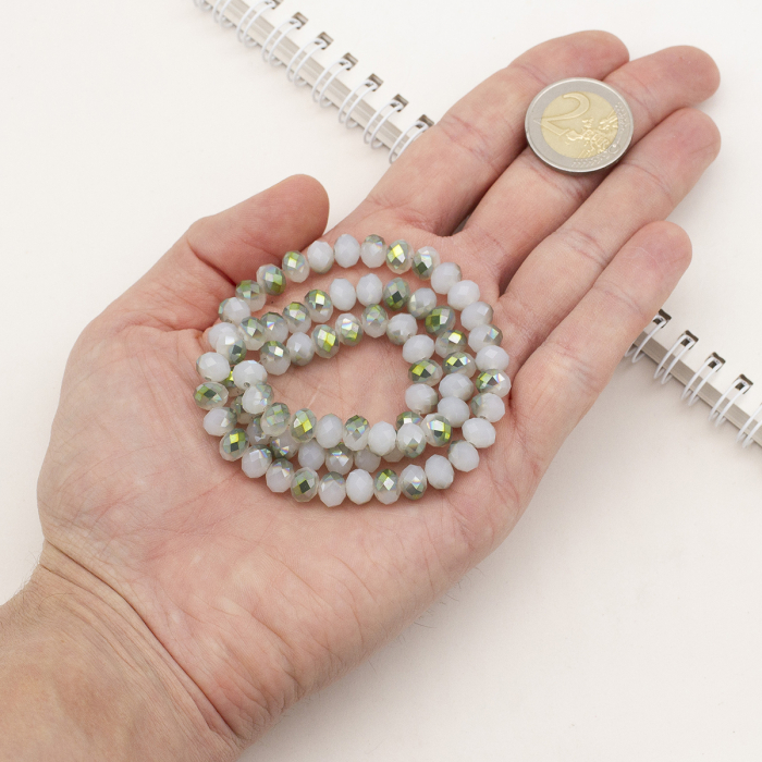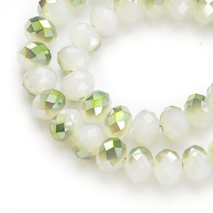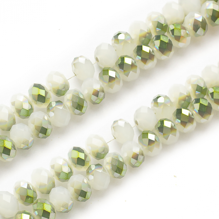 Намистини Гальваніка Скло, під Нефрит, напів, Грановані, Рондель, Колір: Зелений, 8х5мм, Отвір 1мм, близько 72шт / 36см / нитка, (5WB7921)