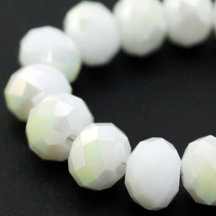 Намистини Гальваніка Скло, під Нефрит, напів, Грановані, Рондель, Колір: Біло-салатовий, 8х5мм, Отвір 1мм, близько 72шт / 36см / нитка, (5WB7959)