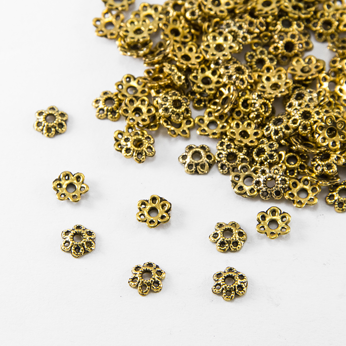 Шапочки для Бусин 6 пелюсток, Квітка, Метал, Тибетський Стиль, Колір: Античне Золото, Розмір: 6х1.5мм, Отвір 2мм, (2WB29206)