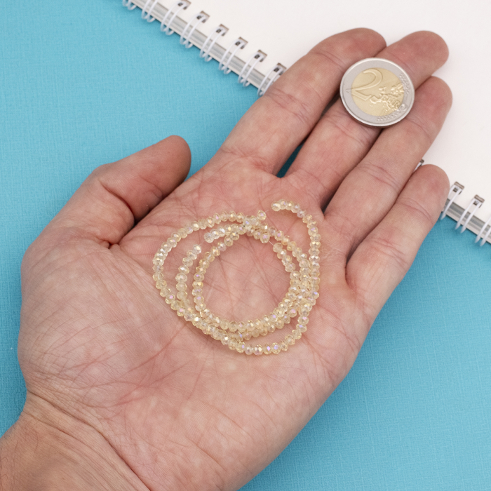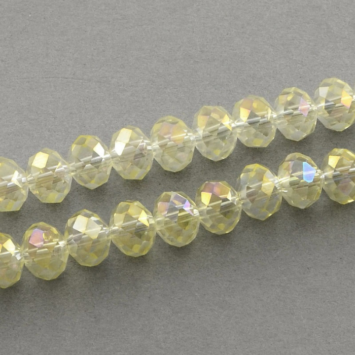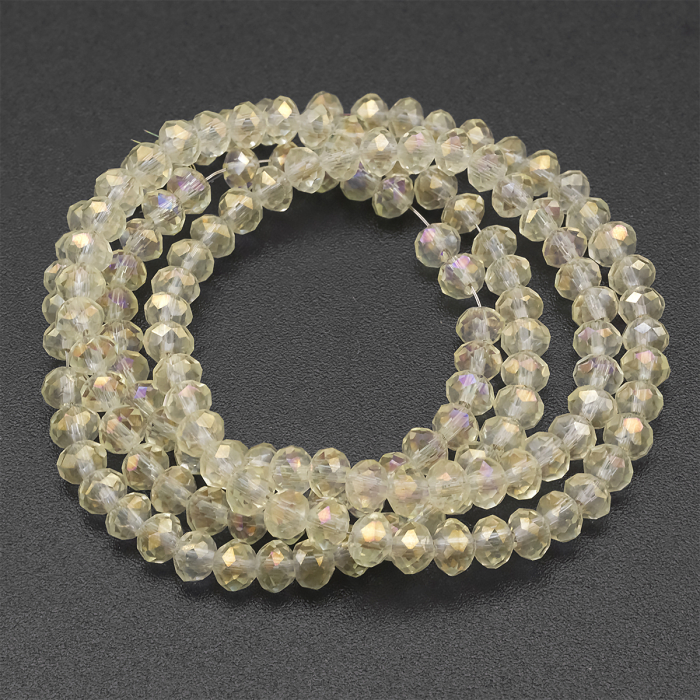 Намистини Гальваніка Скло, Грановані, Рондель, Колір: Блідо-жовтий, Розмір: 3.5х2.5мм, Отвір: 1мм, близько 140шт/36см/нитка, (2WB31033)