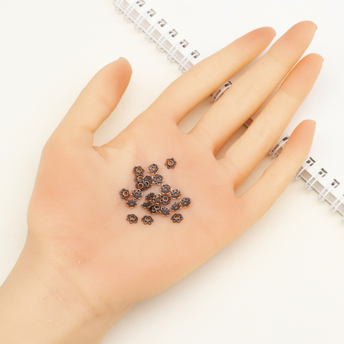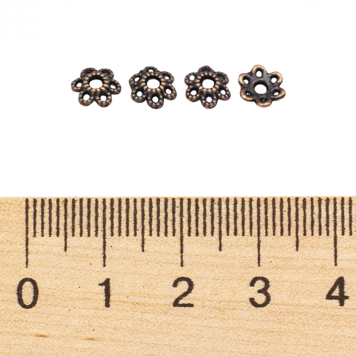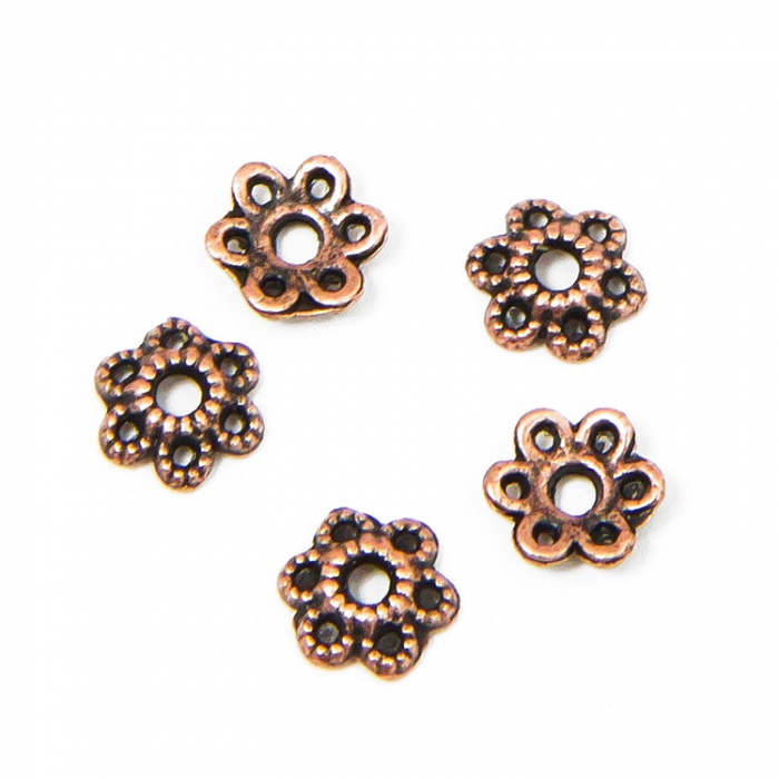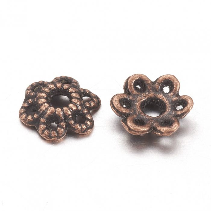 Шапочки для Бусин 6 пелюсток, Квітка, Метал, Тибетський Стиль, Колір: Мідь, Розмір: 6х1.5мм, Отвір 2мм, (13WB11173)