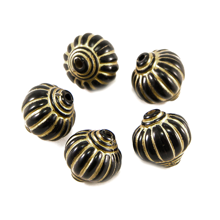 Намистини Акрилові "Париж" Ліхтарик, з Малюнком Металік Золото, Колір: Чорний, Розмір: 14x14мм, Отвір 2мм, близько 19шт/25г, (13WB14214)