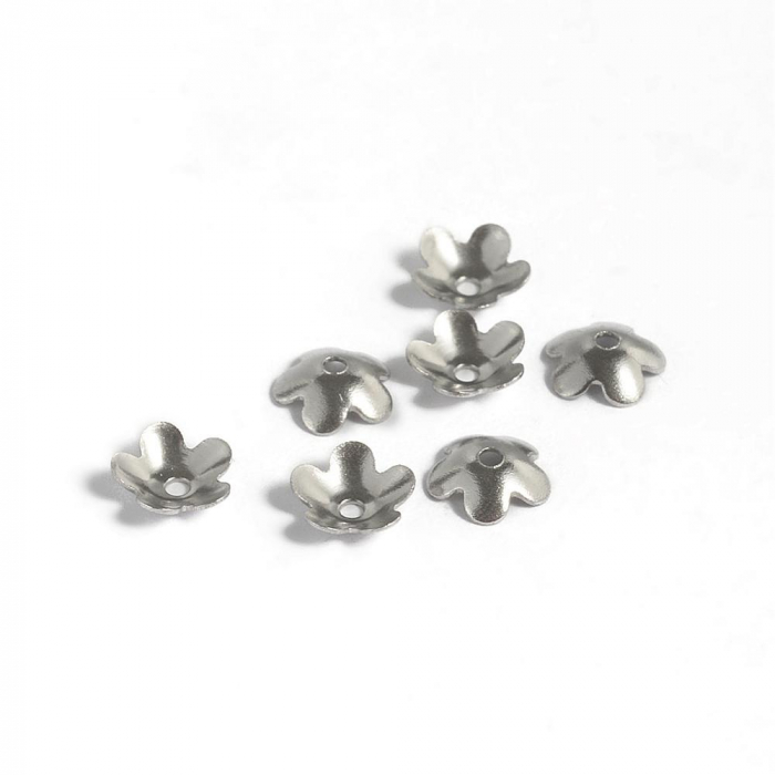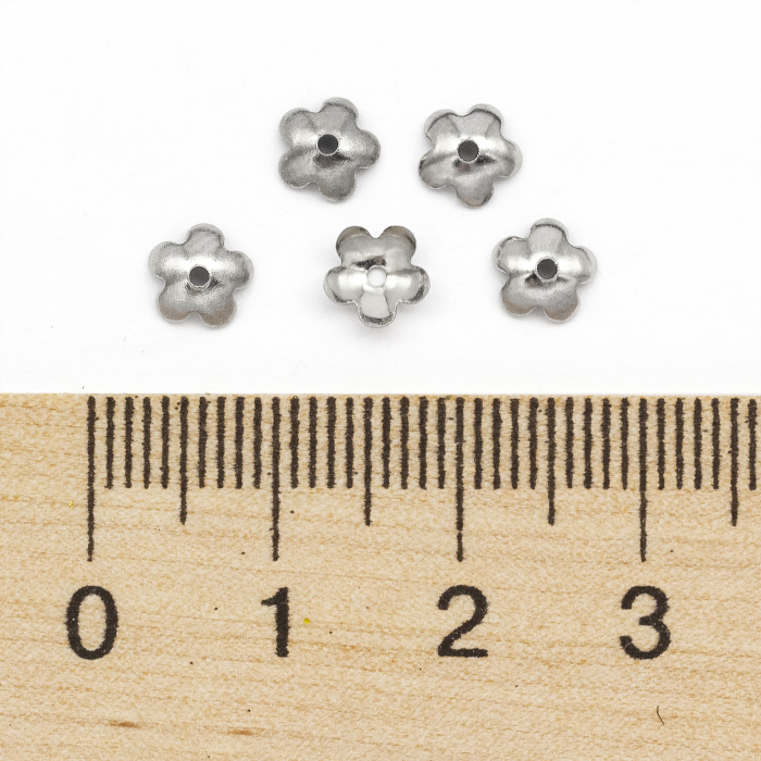 Шапочки для Бусин, Нержавіюча Сталь, Квітка, Колір: Сталь, Розмір: Діаметр 6мм, Товщина 2 мм, Отвір 1мм, (13WB16546)