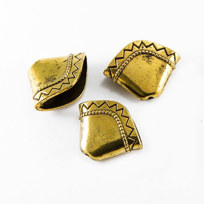 Конус Шапочки для Бусин з Металу, Колір: Античне Золото, Розмір: 17х23х8мм, Отвір 1.5мм, (13WB16780)