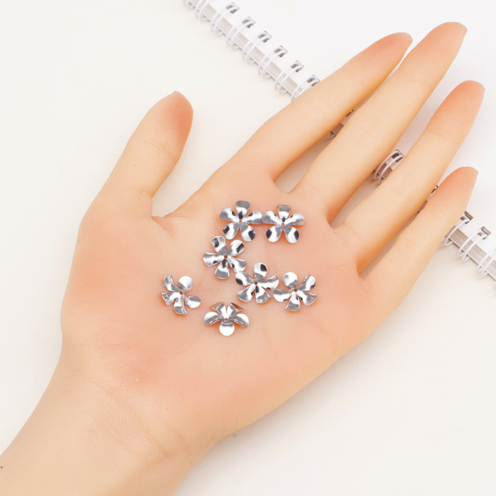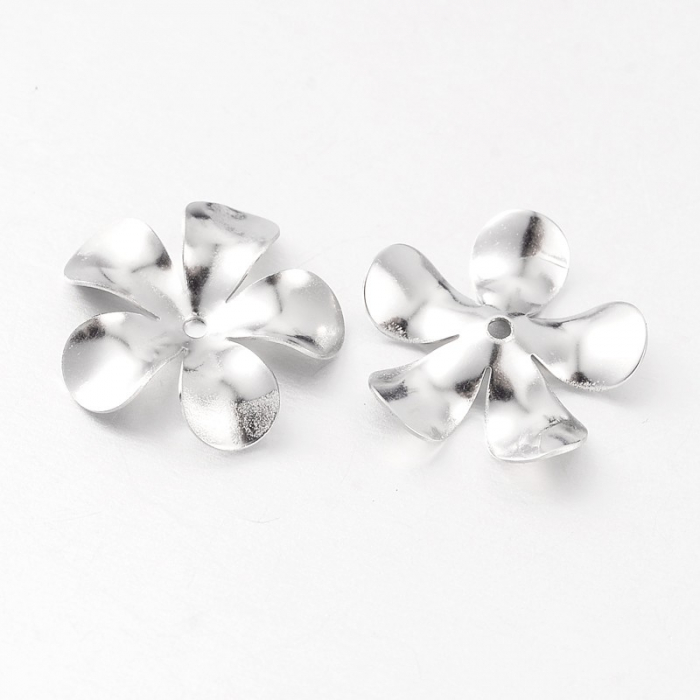 Шапочки для Бусин, Нержавіюча Сталь, Квітка, Колір: Сталь, Розмір 15х2.5мм, Отвір 1мм, (13WB16881)