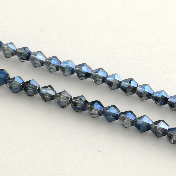 Намистини Гальваніка Скло, Біконус, Колір: Морський Синій, Розмір: 3х3.5мм, Отв-тя 1мм, близько 150шт / 46см / нитка, (13WB19021)