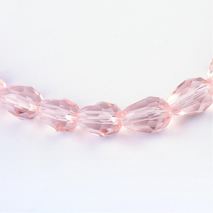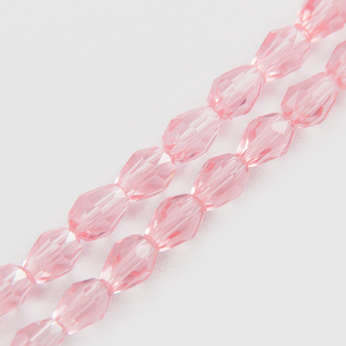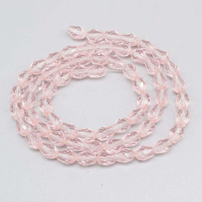 Намистини Скло Крапля, Прозорі, Грановані, Колір: Рожевий, Розмір: 8х6мм, Отв-тя: 1мм, близько 62шт / 43.5см / нитка, (13WB19176)