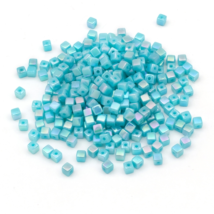 Намистини Акрилові Кубики АВ-колір, Бірюза, 4х4мм, Отвір 1мм, близько 400шт/25г, (13WB24765)