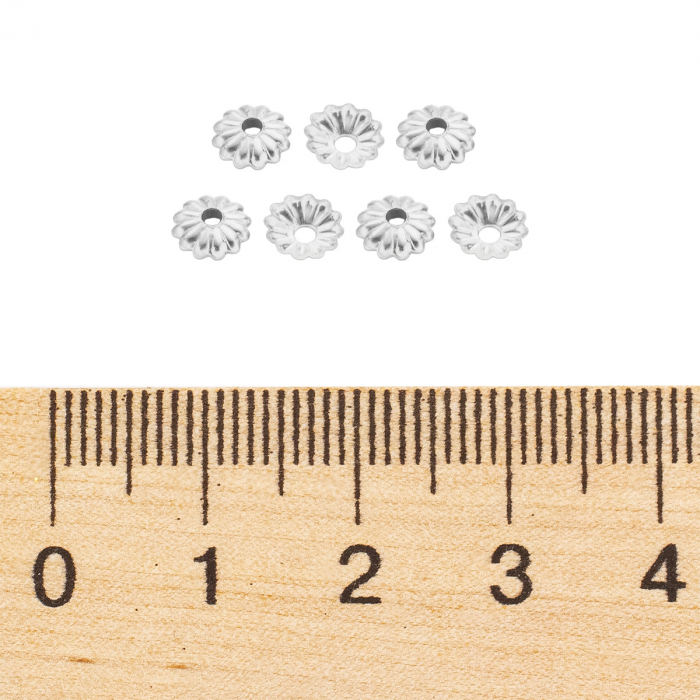 Шапочки для Намистин Залізні, Квітка, Колір: Срібло, Розмір: 5х1.5мм, Отвір 1мм, близько 410шт/10г, (13WB26209)