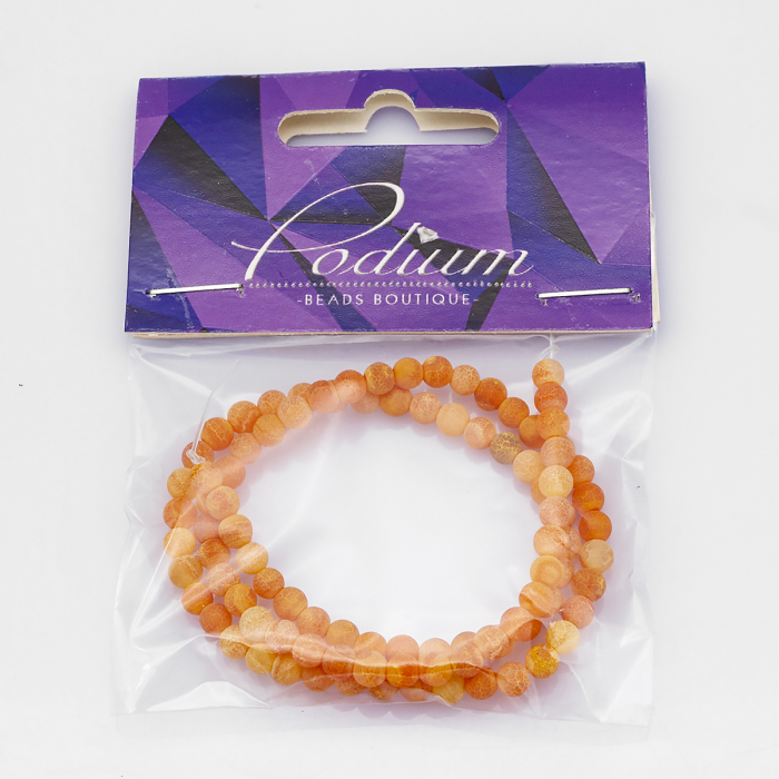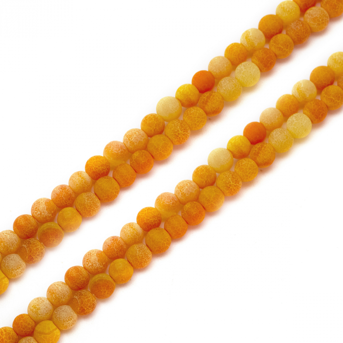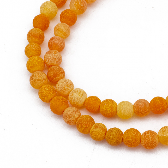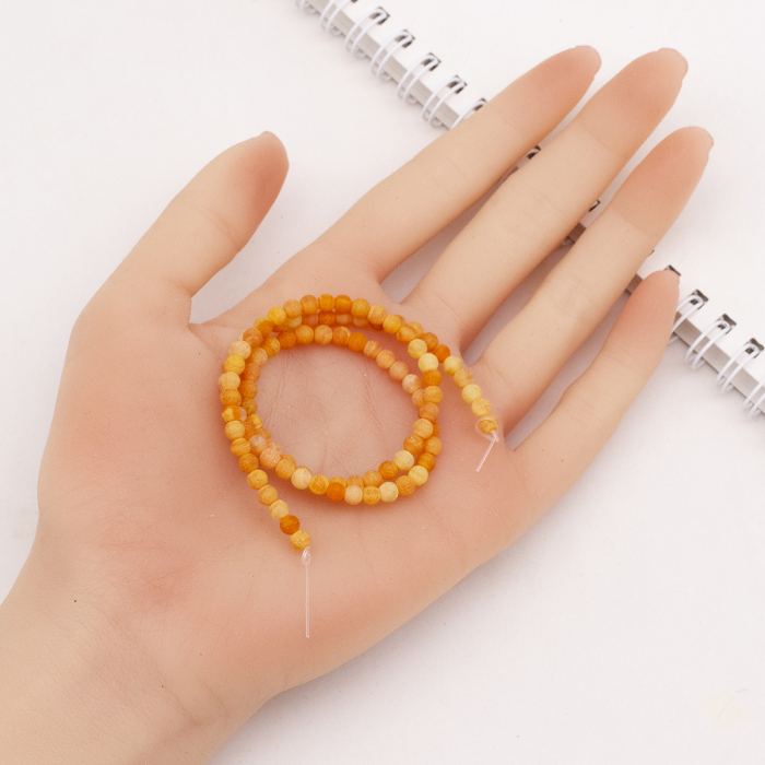 Намистини Агат Кракле Натуральний, Круглі, На нитках, Клас А, Колір: Оранжевий, Діаметр: 4мм, Отвір 0.8мм, близько 90шт/38см/нитка, (13WB25129)