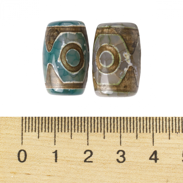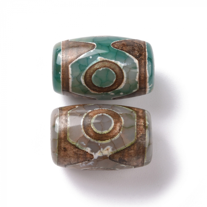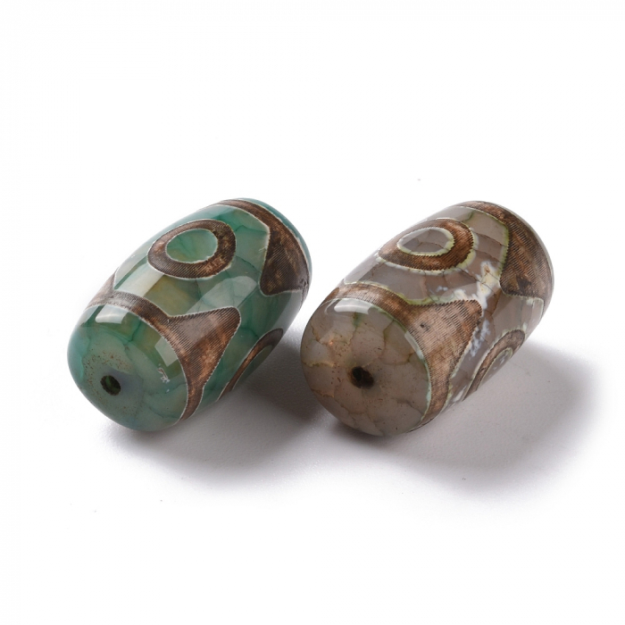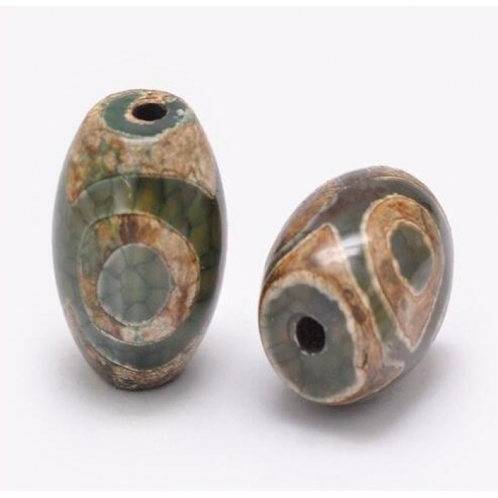 Намистини Натуральний Агат Дзи, 3 Ока, Овал, Пофарбовані, Темно-оливковий, 20-22x14-15мм, Отвір 2.5-3 мм, (13WB16407)Упак.: