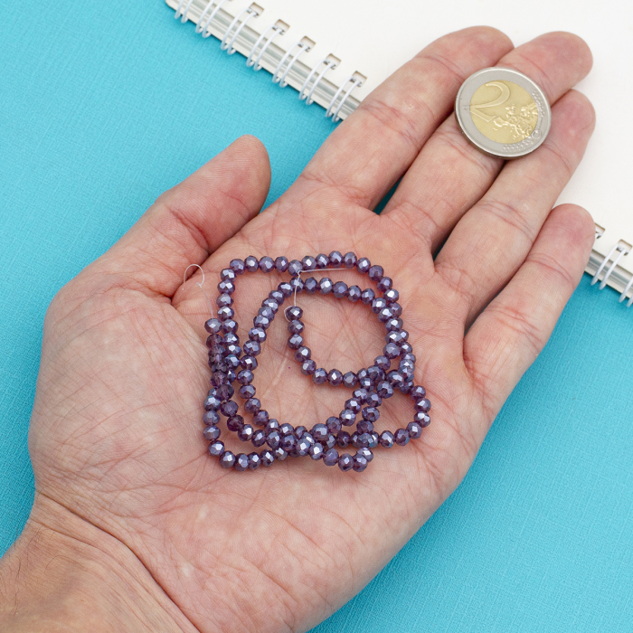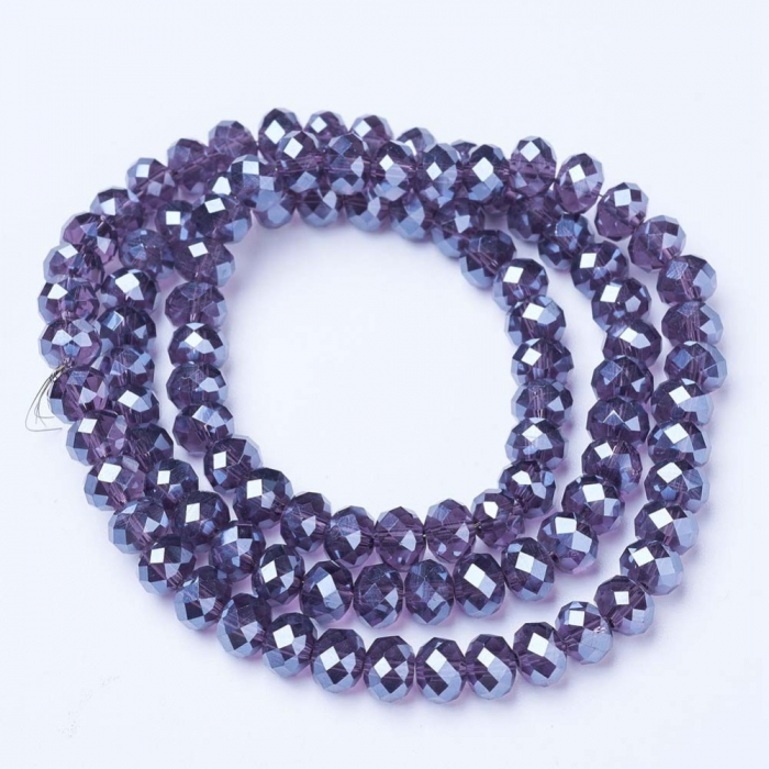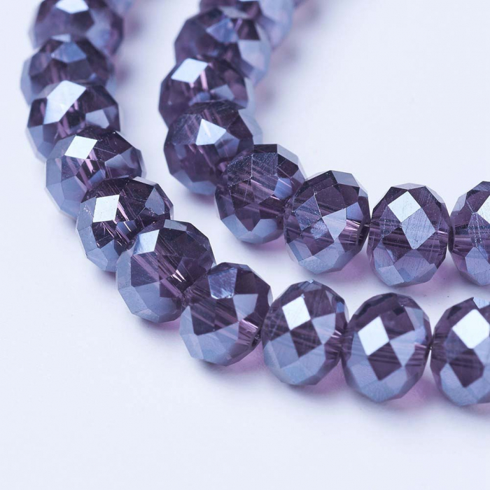 Намистини Гальваніка Скло, Гранені, Рондель, Колір: Синьо-сірий, 4х3мм, Отвір 0.4мм, близько 116шт/40см/нитка, (13WB28752)
