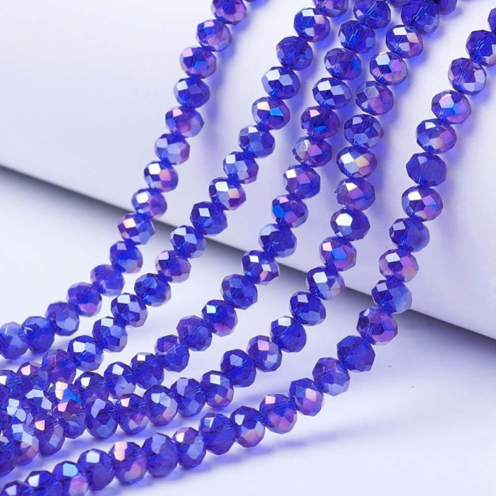 Намистини Гальваніка Скло, Гранені, Рондель, АВ колір, Синій, 8х6мм, Отвір 1мм, близько 68шт/39см/нитка, (13WB28764)