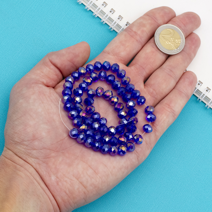 ✔Гарантія якості ✔Швидка доставка ✔Зручне замовлення ★ Намистини Гальваніка Скло, Гранені, Рондель, АВ колір, Синій, 8х6мм, Отвір 1мм, близько 68шт/39см/нитка, (13WB28764) у MixForm ➨ встигніть купити за вигідною ціною!