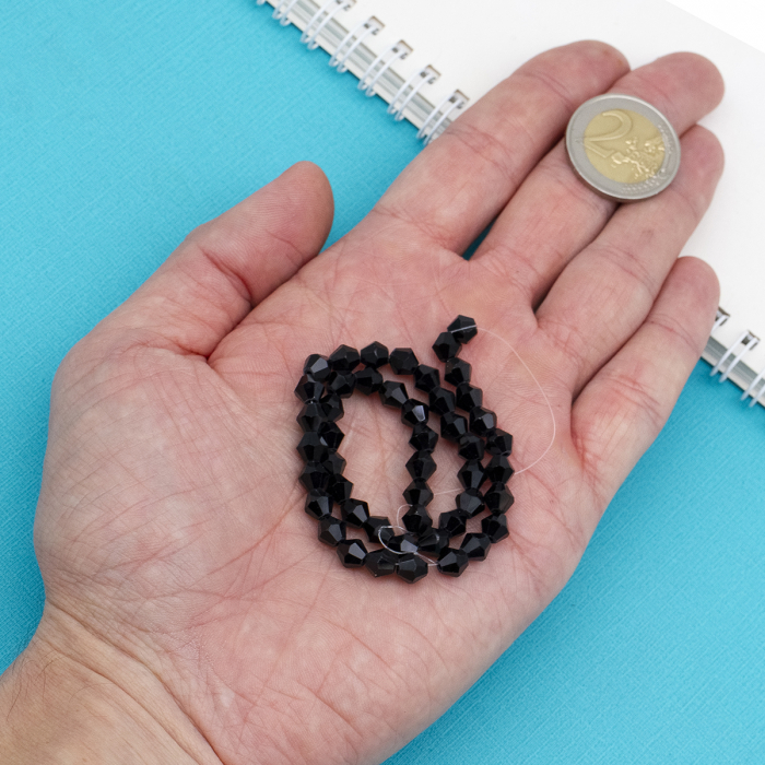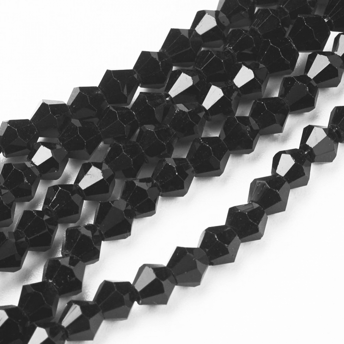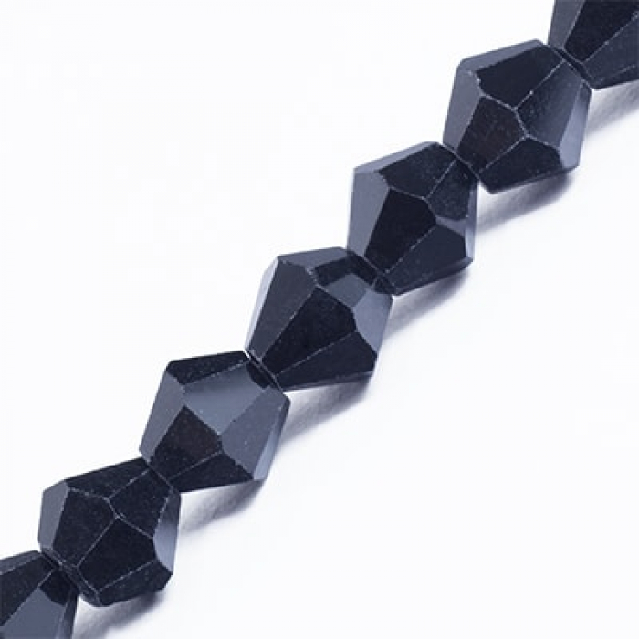 Намистини Австрійський Кришталь Імітація Скляні, Гранені Біконус, Чорний, 6х6мм, Отвір 1мм, близько 41шт/22см/нитка, (2WB29299)