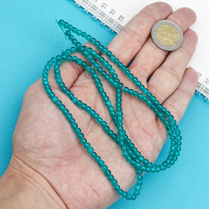 Намистини "Бите Скло" Круглі, Бірюзовий, 4 мм, Отвір 1мм, близько 200шт/80см/нитка, (13WB19786)