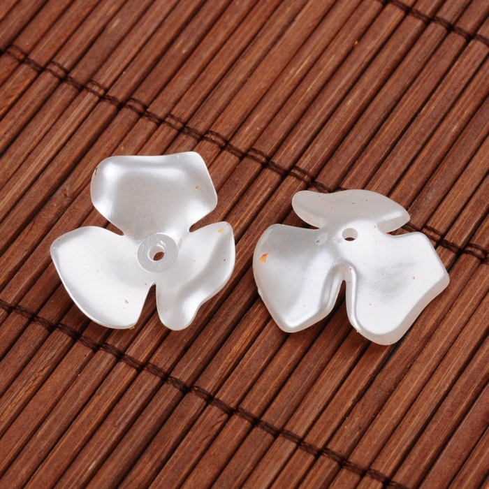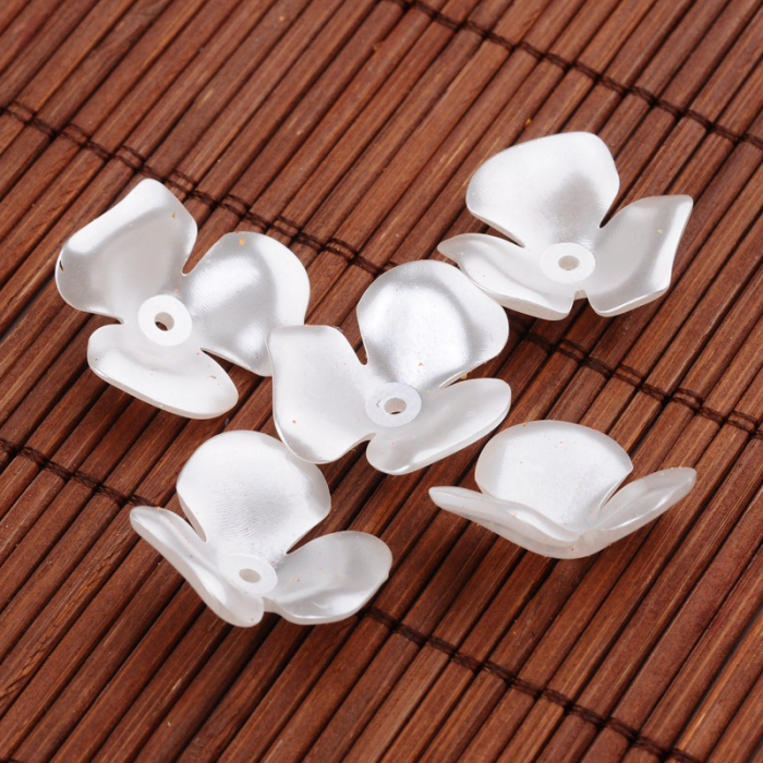 Перли Намистини Акрилові, Глянцеві, Квітка, Колір: Білий, Розмір: 22х6.5мм, Отв-тя: 1мм, близько 30шт / 25г, (13WB18806)